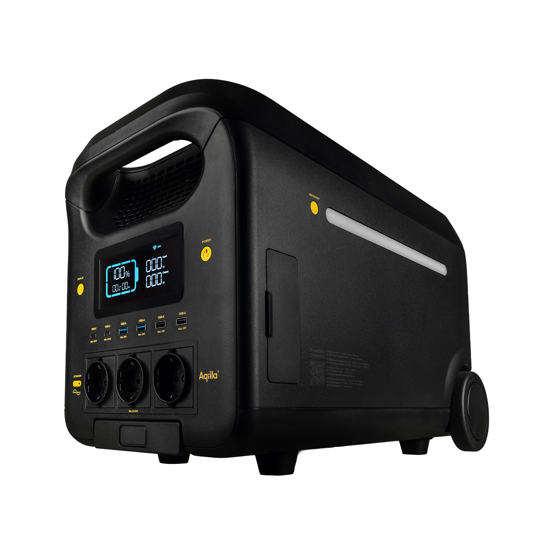 3000W that can peak up to 5000W. The LiFePO4 battery delivers 2560Wh with 4000 charge cycles. 1.7h Fast Charging. Low working noice of only 30dB.