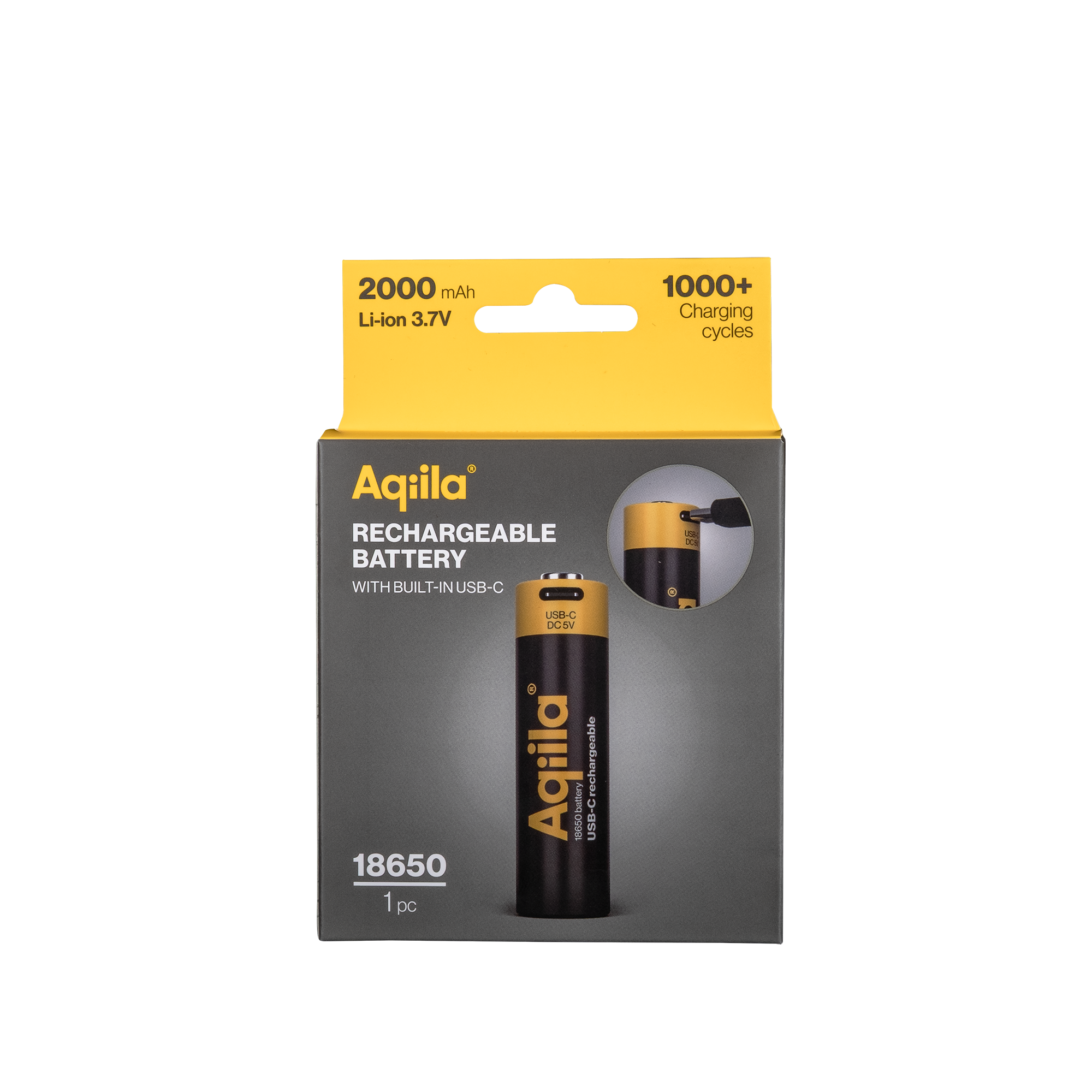 The Aqiila 18650 USB-C Rechargeable Battery is built for high-drain devices like flashlights and action cameras.